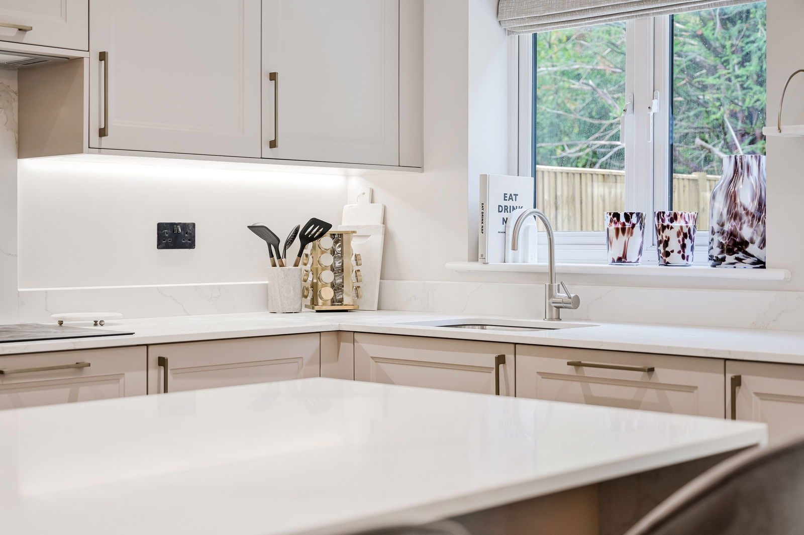- Fully fitted shaker kitchen with a stone work surface & Bosch integrated appliances