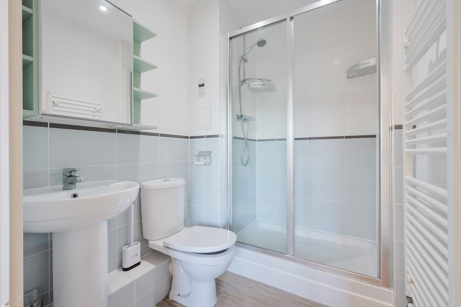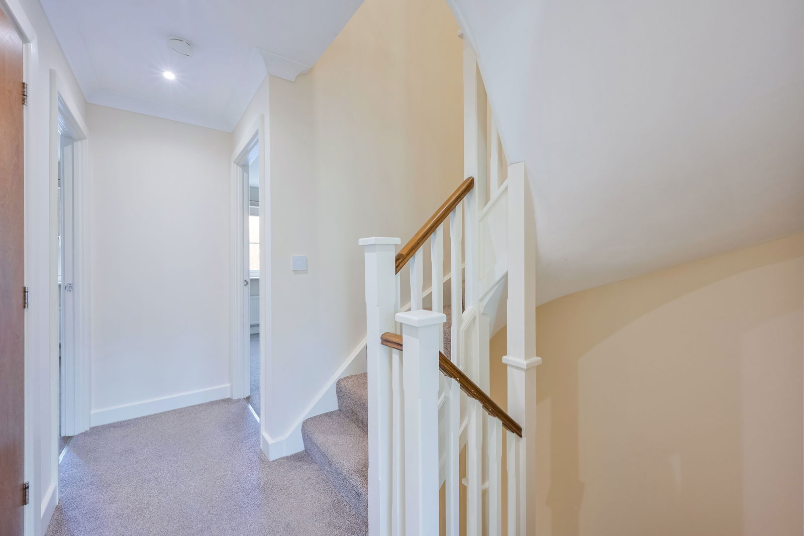On the second floor are two generous double bedrooms with built-in wardrobes. The main bedroom benefits from an en-suite, while the second includes full-width mirrored wardrobes.