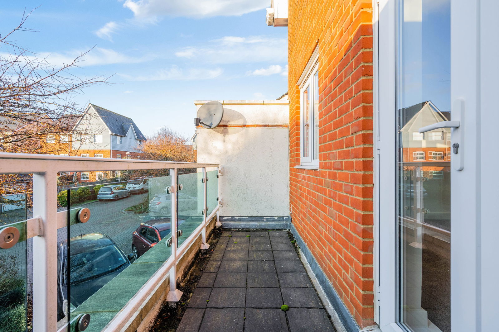 The first floor features a large living room with a front-facing balcony, a family bathroom with bath and overhead shower, a single bedroom ideal as a study or child’s room, and a well-sized double bedroom.