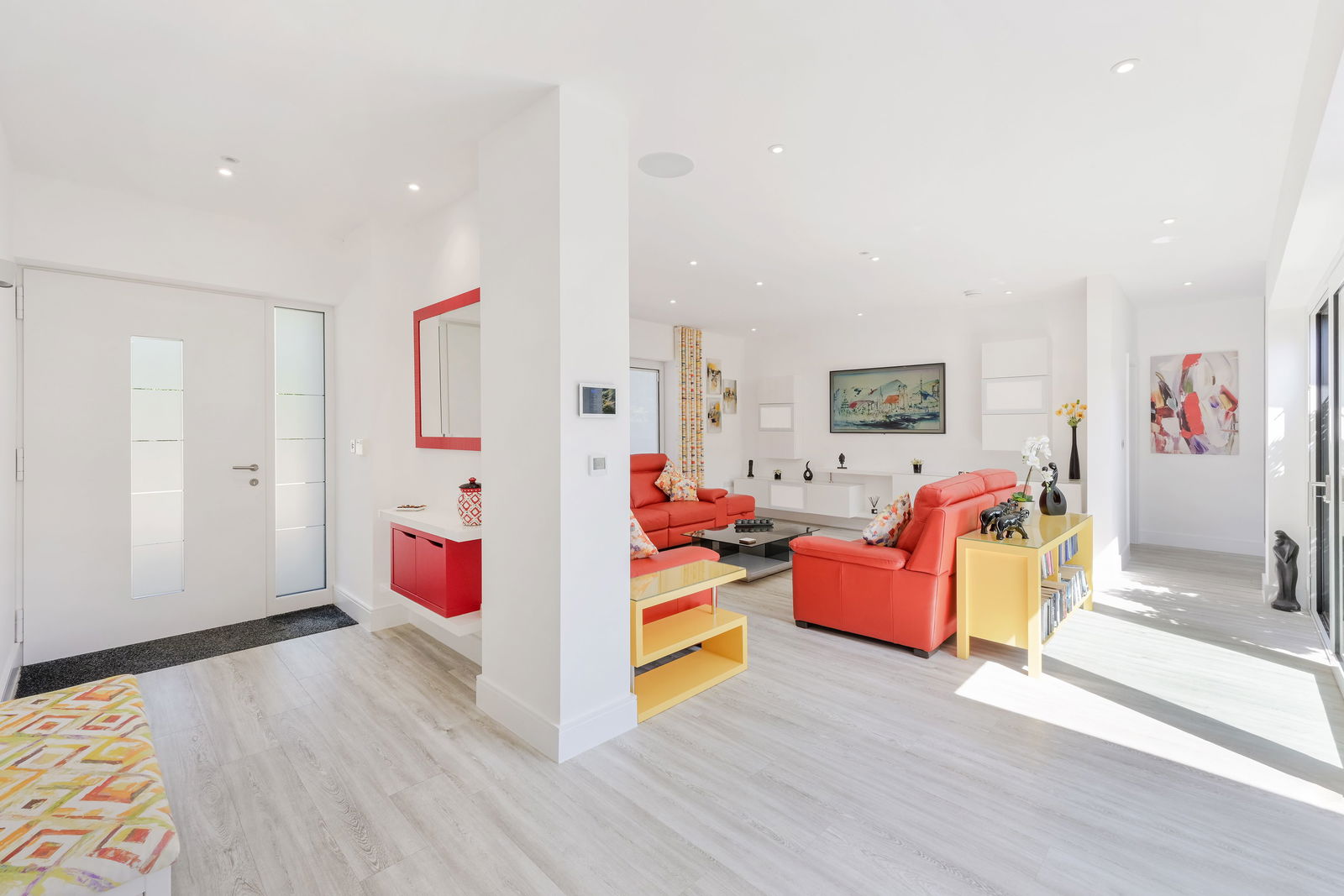 Set back from the ever popular Raglan Road, behind its own large driveway, sits this unique architect designed single-storey home. When you step into the spacious entrance hall, you immediately notice how the whole space is flooded with natural light. To your left is a contemporary sitting room which benefits from its view over the internal courtyard. This room flows seamlessly in one direction towards the kitchen and dining space and in the other direction towards the more private family bedrooms and bathrooms.