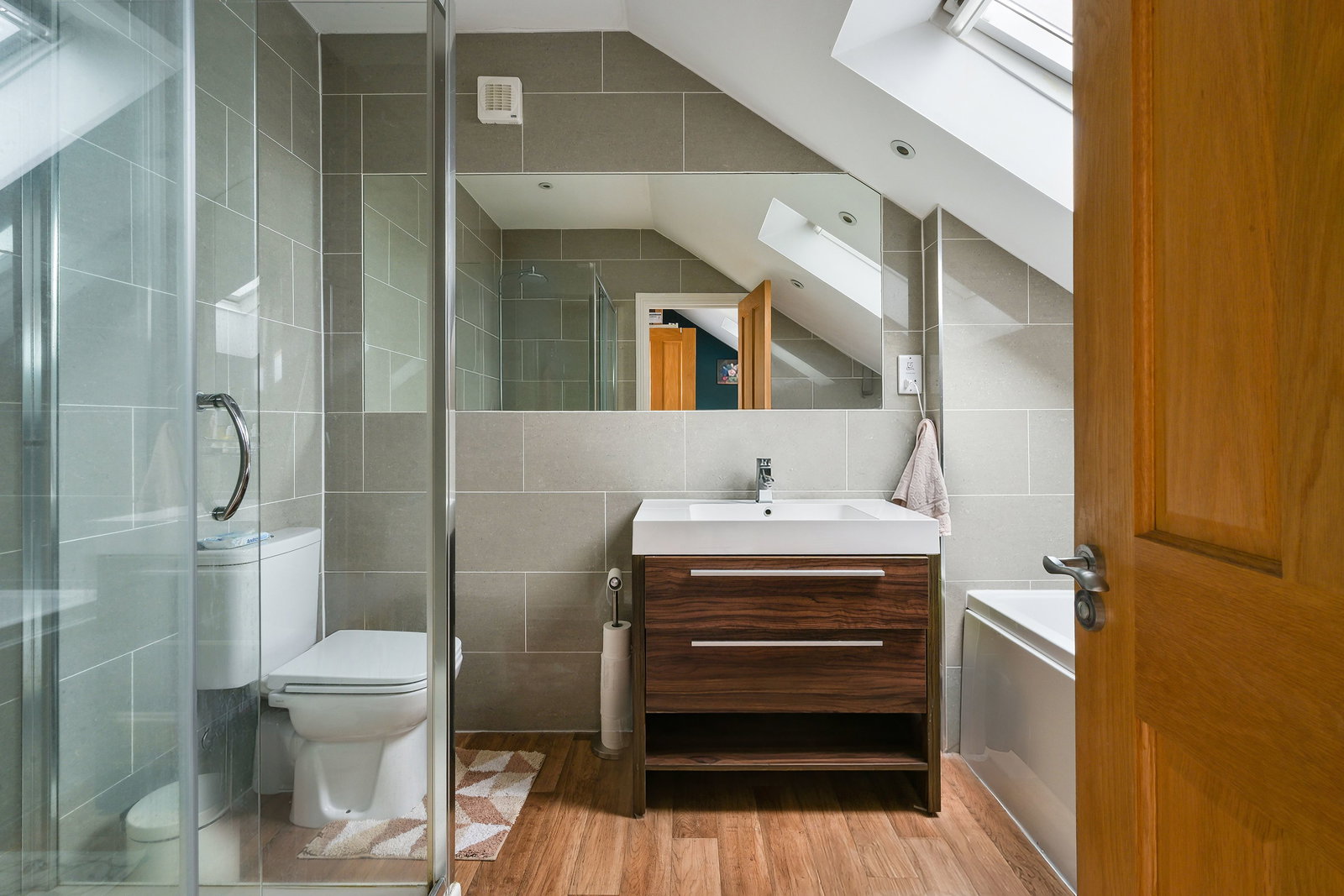 The first floor has three comfortable double bedrooms, one of which is a guest bedroom benefiting from its own en-suite shower room. A well-appointed family bathroom also serves this floor. Ascending to the second floor, you’ll discover a beautiful and substantial master suite. This generously proportioned area comprises a large bedroom with a unique Juliet balcony, a dedicated dressing area, and an en-suite four-piece bathroom, offering a private sanctuary. Further eaves storage is also accessible from this level.