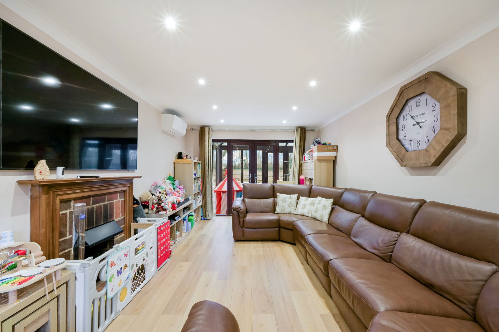 The property is set back from the road with the large driveway, which could accommodate several cars, providing privacy to the house. Through the front door you are welcomed by the entrance hall with access to the reception room, study, cloakroom and dining room through to the kitchen. The reception room has double aspect with a sun trapped conservatory to the rear pouring in natural light and double doors into the garden, and benefits from a wood burning fireplace. The dining room flows into the kitchen which has a range of cabinetry and space for appliances with a separate utility room which has access into the double garage.