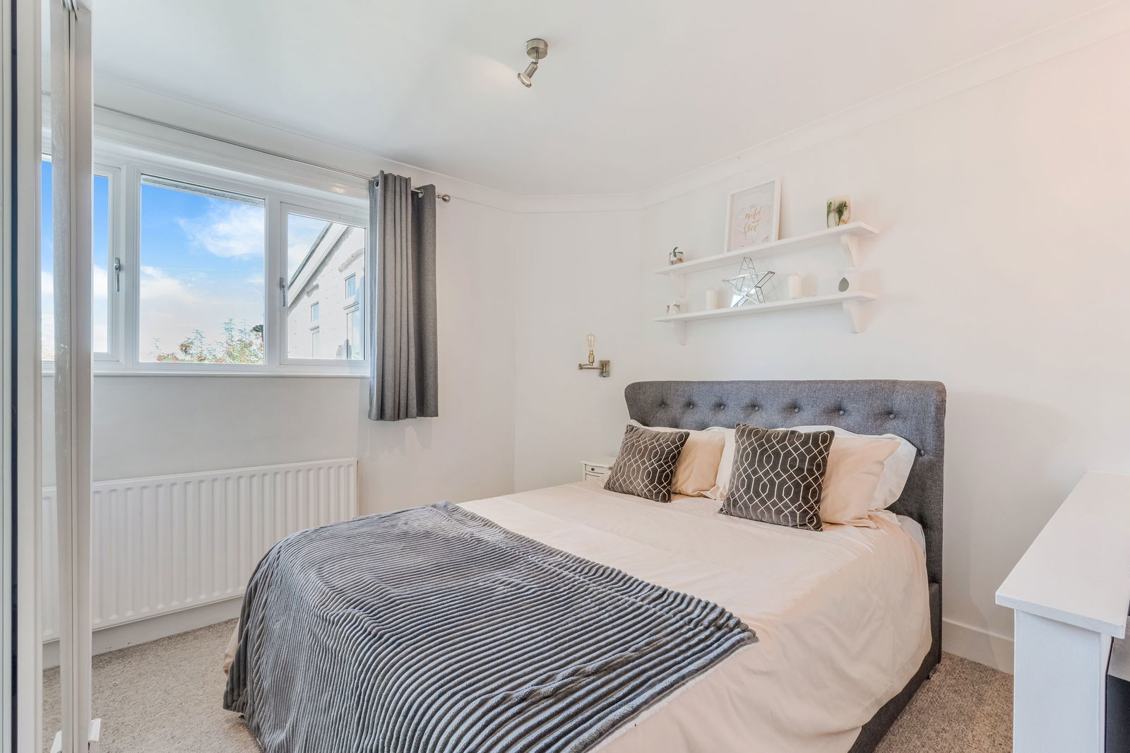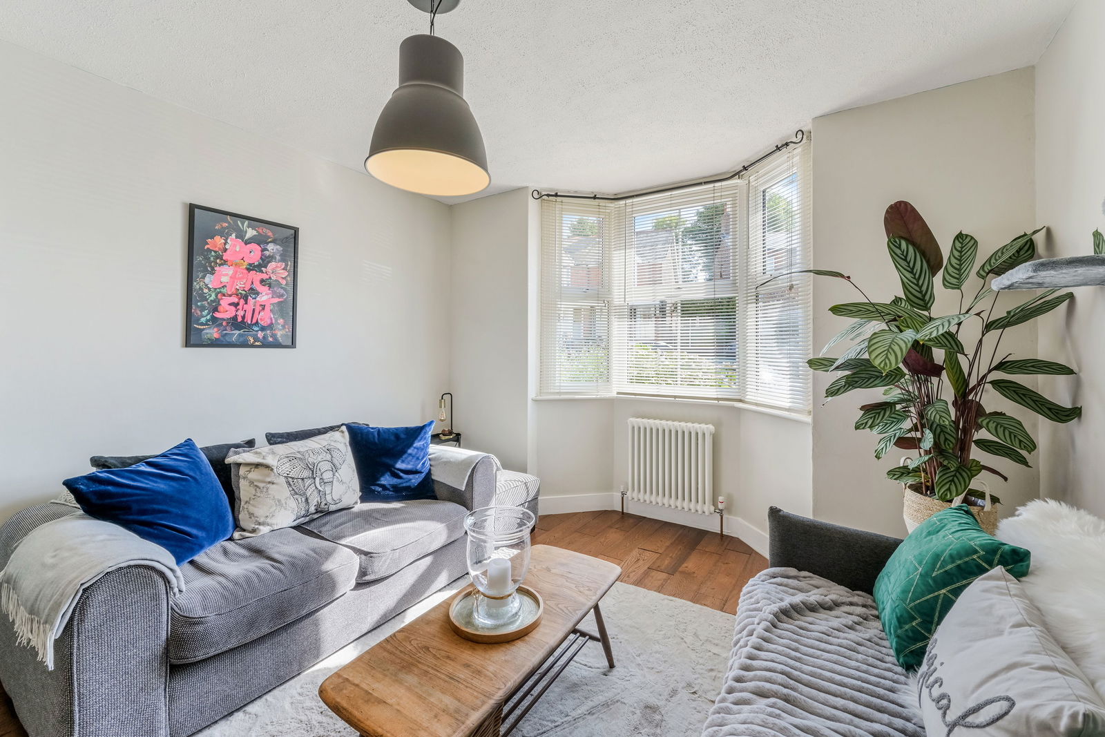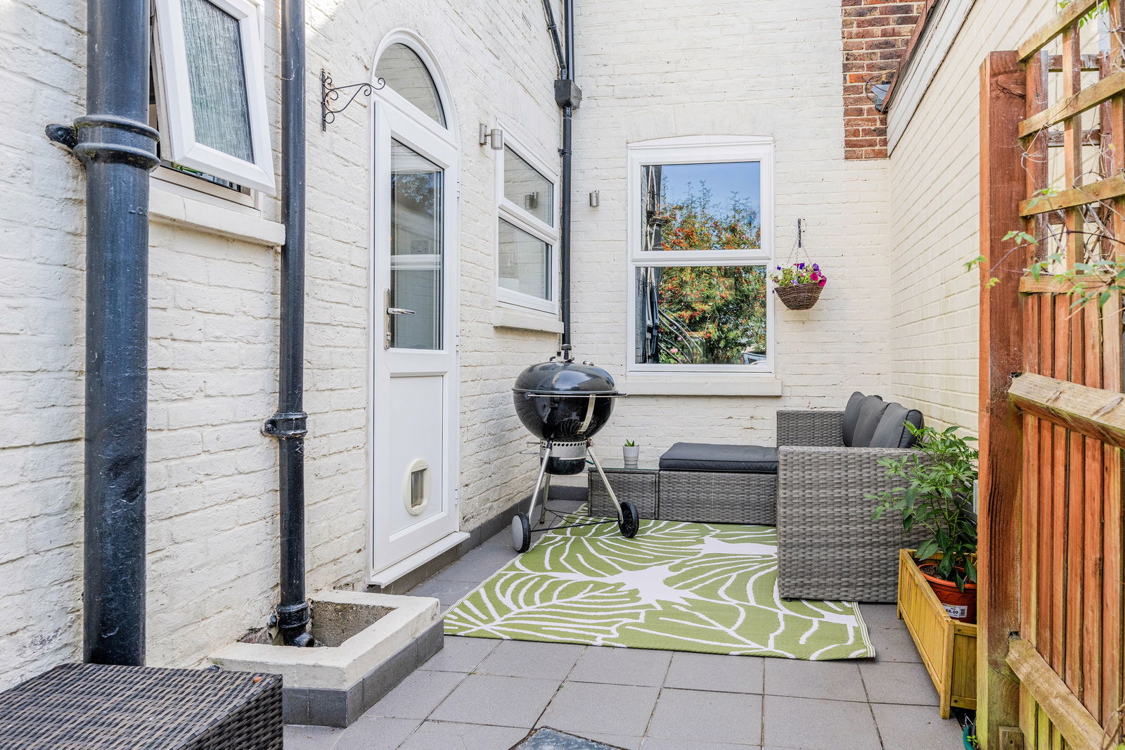 Walking through your private entrance, to your right you have your spacious kitchen with white cupboards lining the walls. There is a pantry offering additional storage space with access to the garden just before this. Off the kitchen is where you will find the contemporary finished family bathroom. Outside there is a private garden, the patio is a quiet little haven to set up your furniture. At the end of the garden is a summer house, offering you some additional storage or a space for a home office/play room. At the front of the property you will find your living room with a bay window allowing natural light to pour in.