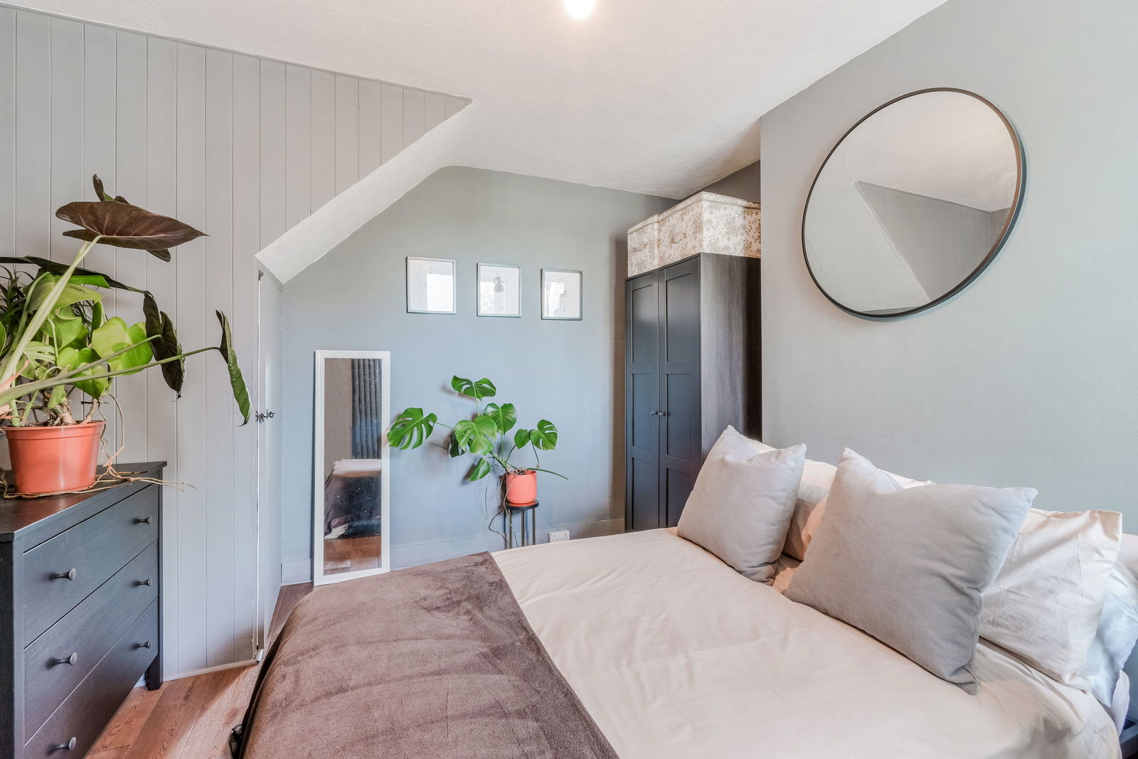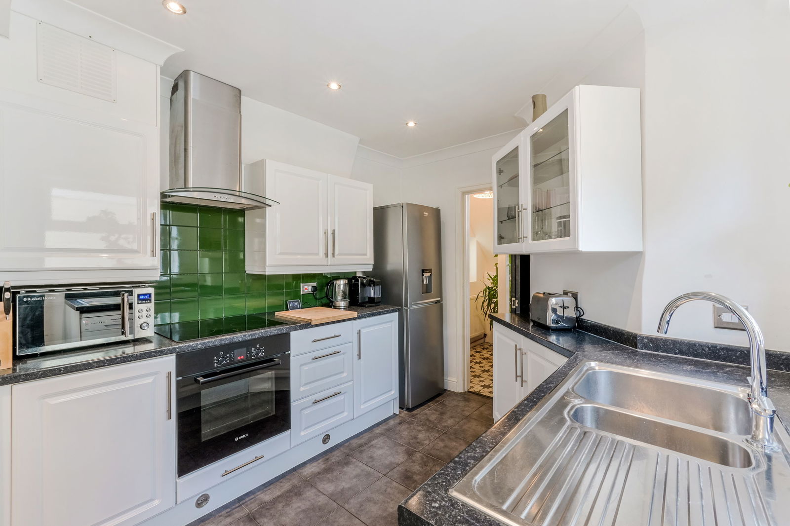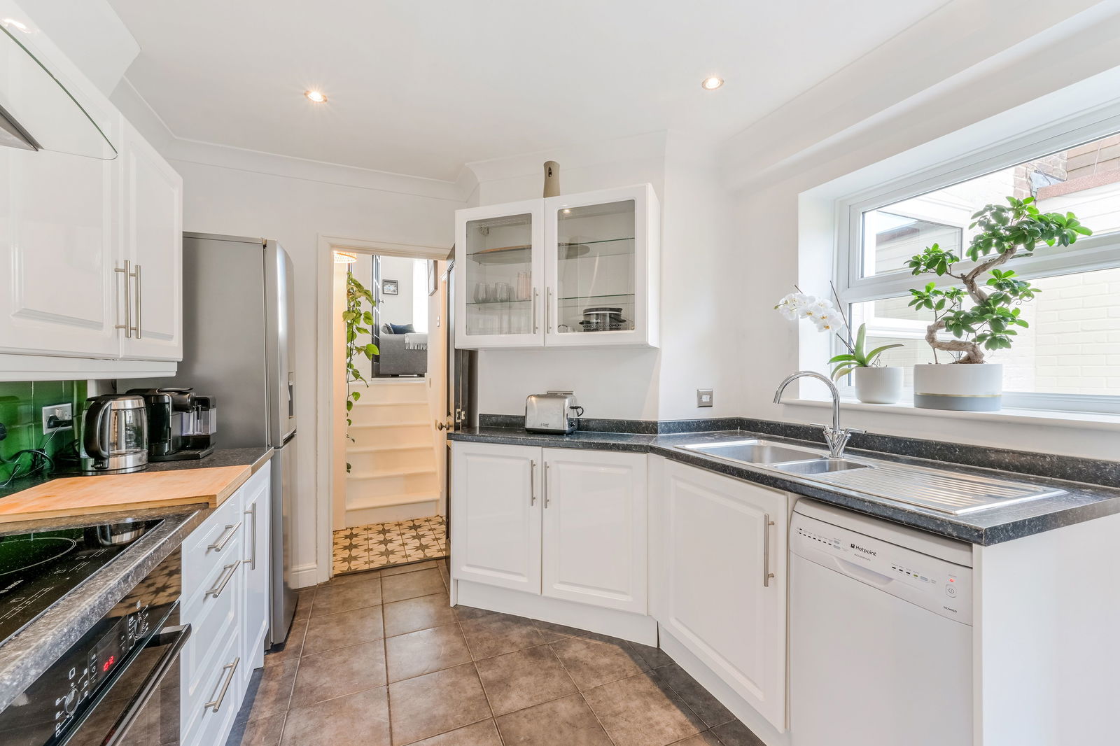 Walking through your private entrance, to your right you have your spacious kitchen with white cupboards lining the walls. There is a pantry offering additional storage space with access to the garden just before this. Off the kitchen is where you will find the contemporary finished family bathroom. Outside there is a private garden, the patio is a quiet little haven to set up your furniture. At the end of the garden is a summer house, offering you some additional storage or a space for a home office/play room. At the front of the property you will find your living room with a bay window allowing natural light to pour in.