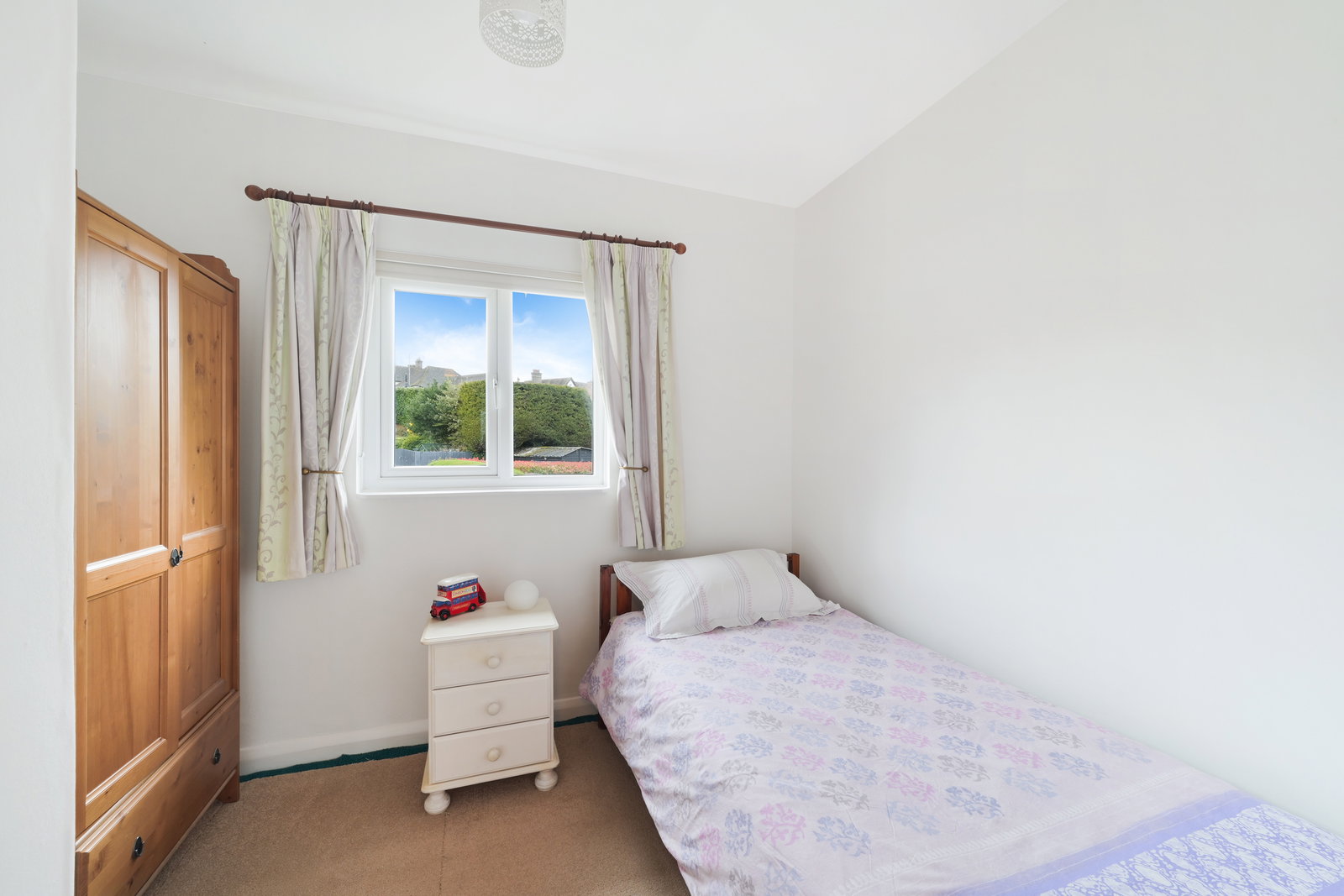 First Floor Landing: Built in cupboard housing gas central heating boiler, access to loft, window to flank wall offering a sunny aspect to the staircase. The family bathroom has a bath, electric shower unit and vanity sink and built in linen cupboard, bedroom 1 has built in mirror front sliding door wardrobe/cupboards with pleasant views over the rear garden, bedroom 2 has a built in cupboard and bedroom 3 faces the front of house.