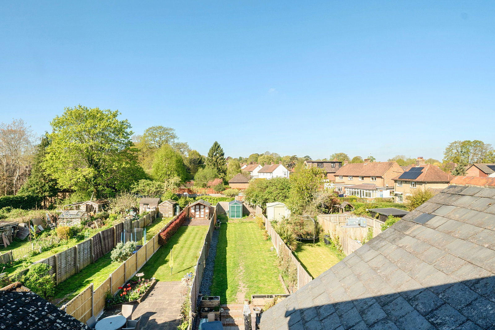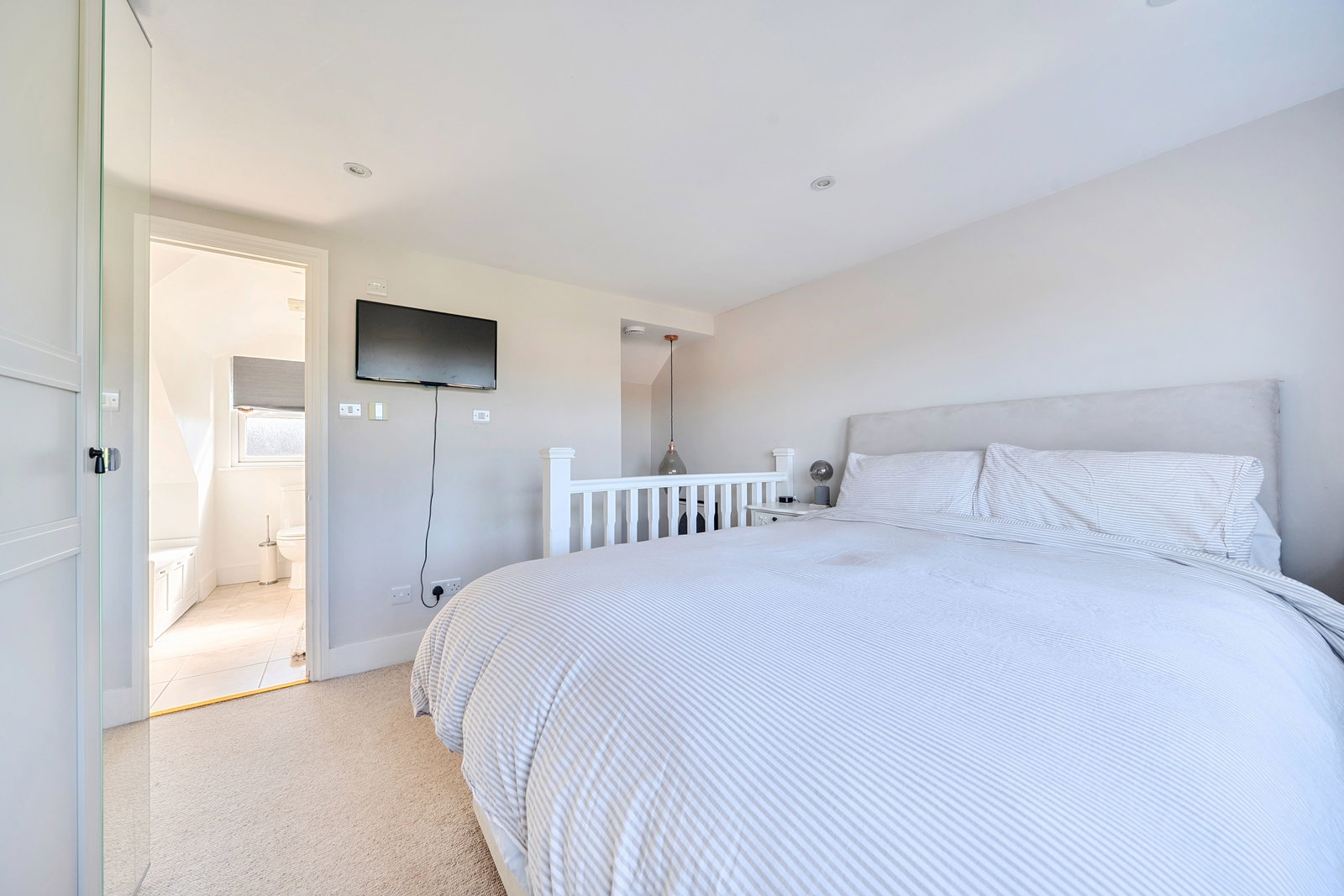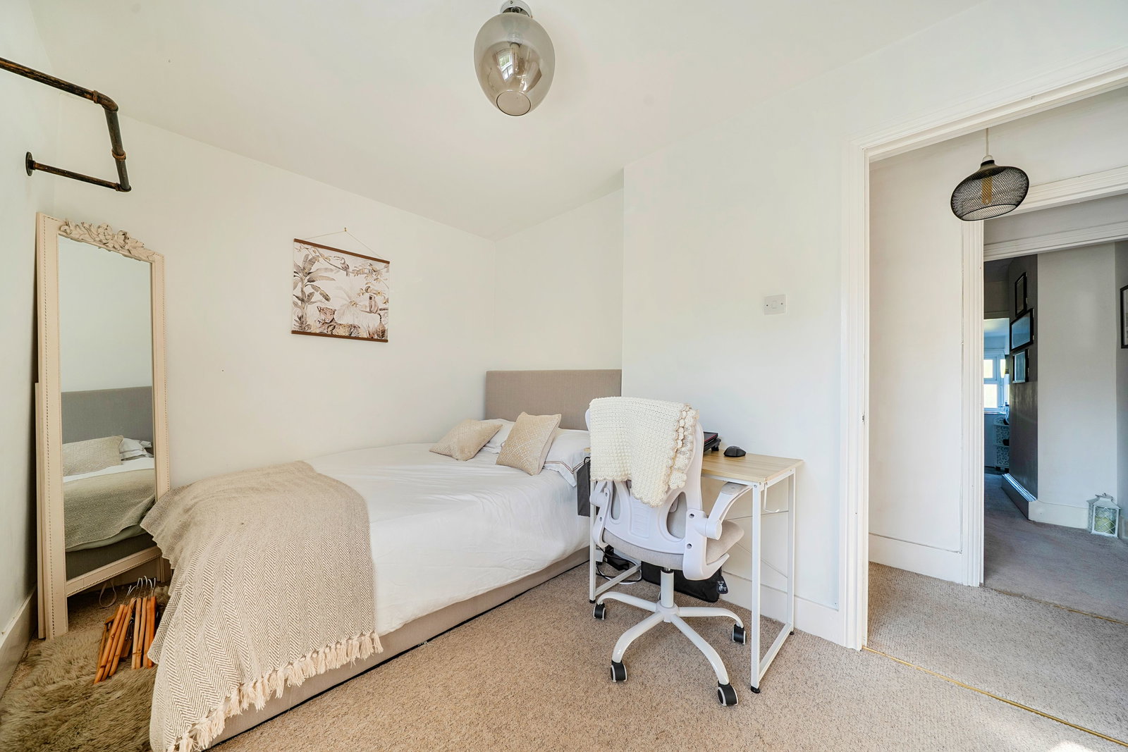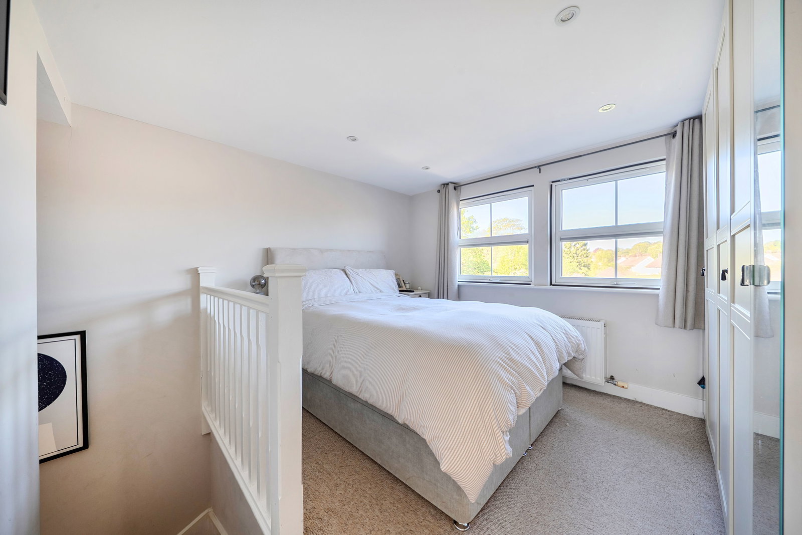 The first floor comprises two bedrooms, including a generous principal bedroom, alongside a family bathroom. A further staircase rises to the second floor where a third bedroom is located, benefiting from useful eaves storage and access to an additional WC, making it an ideal guest room, home office or private retreat.