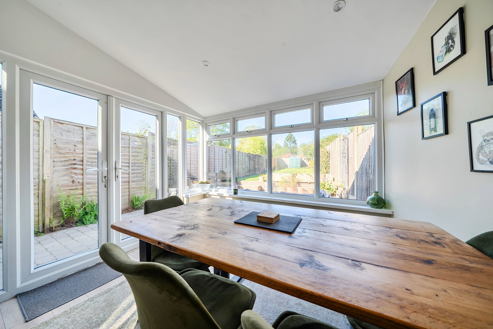 On the ground floor, a welcoming reception room to the front creates a cosy living space, while the separate dining room flows through to a well-appointed kitchen fitted with a range of units and integrated appliances. To the rear, a bright conservatory provides additional living or dining space and enjoys views over the garden, with doors opening out to create a seamless indoor-outdoor connection.