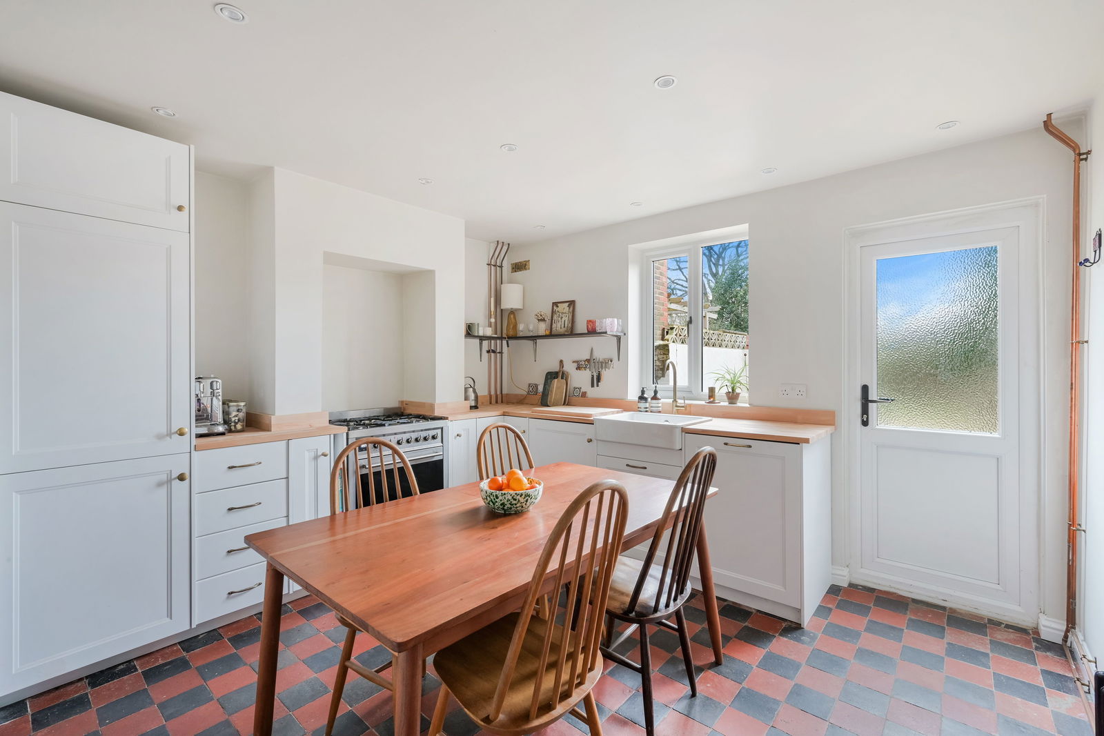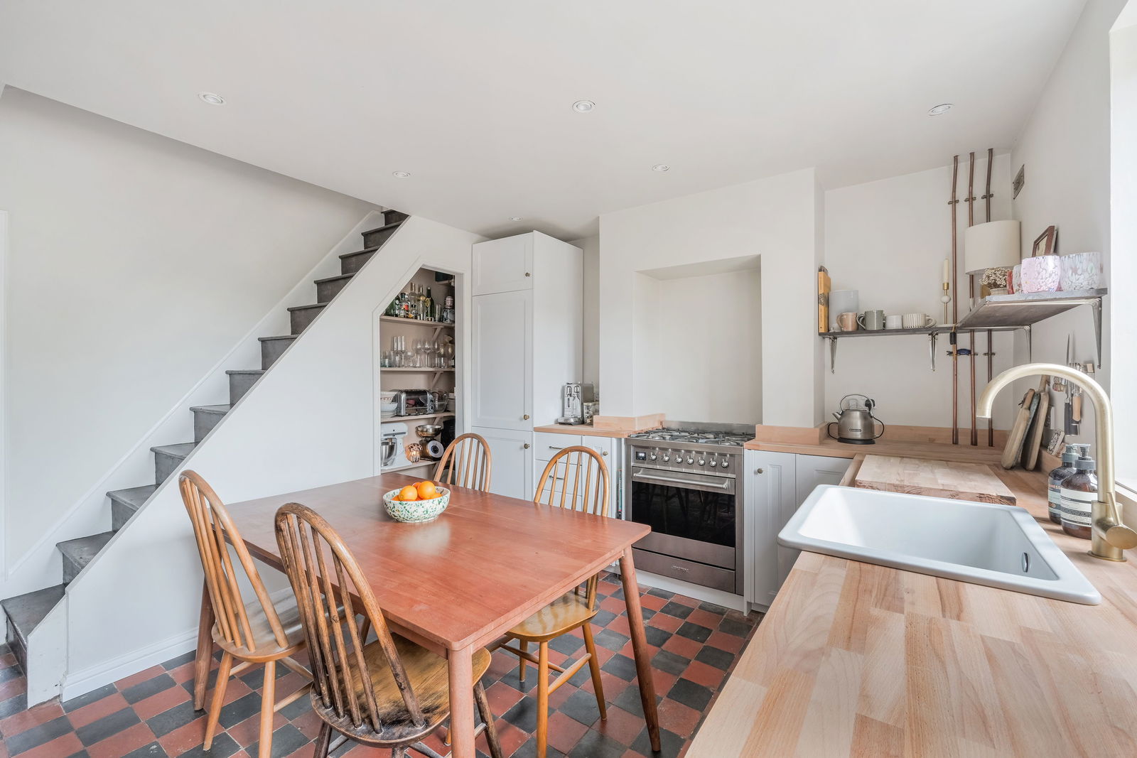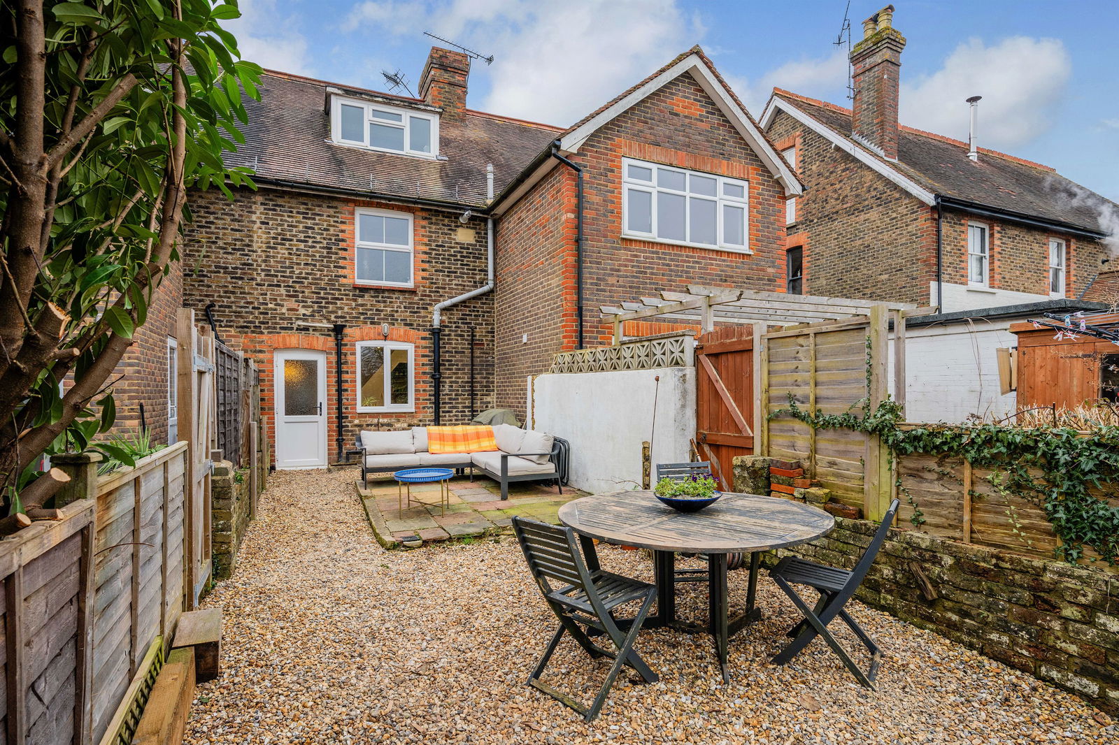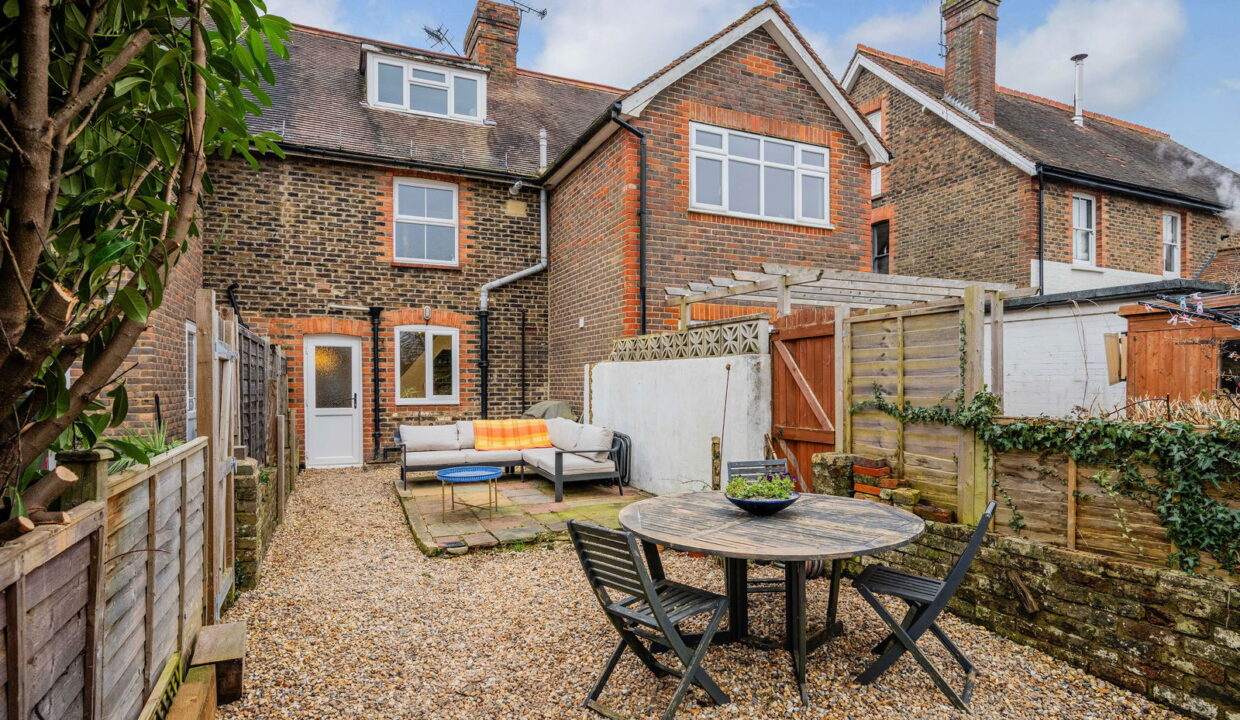 Tucked away on a quiet, sought-after road in the heart of Lingfield village, this beautifully presented three-bedroom, extended end-of-terrace period cottage offers the perfect blend of character charm and modern living. Set over three floors and spanning approximately 1,079 sq ft, the property boasts a spacious and light-filled open-plan reception and dining room, featuring stylish flooring and a striking spiral staircase. The contemporary kitchen, with sleek white cabinetry and ample worktop space, overlooks the garden and offers access to a convenient ground floor WC.