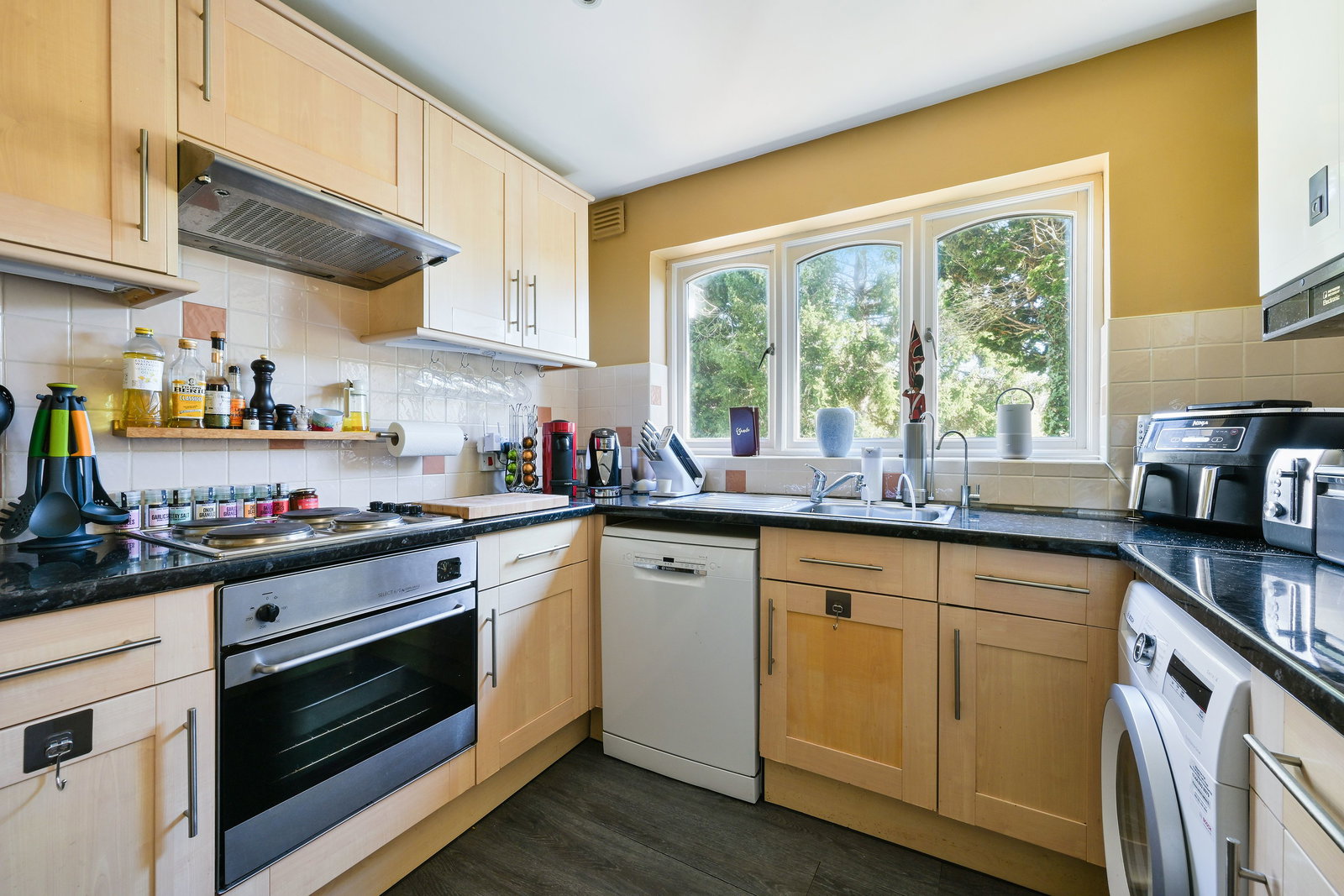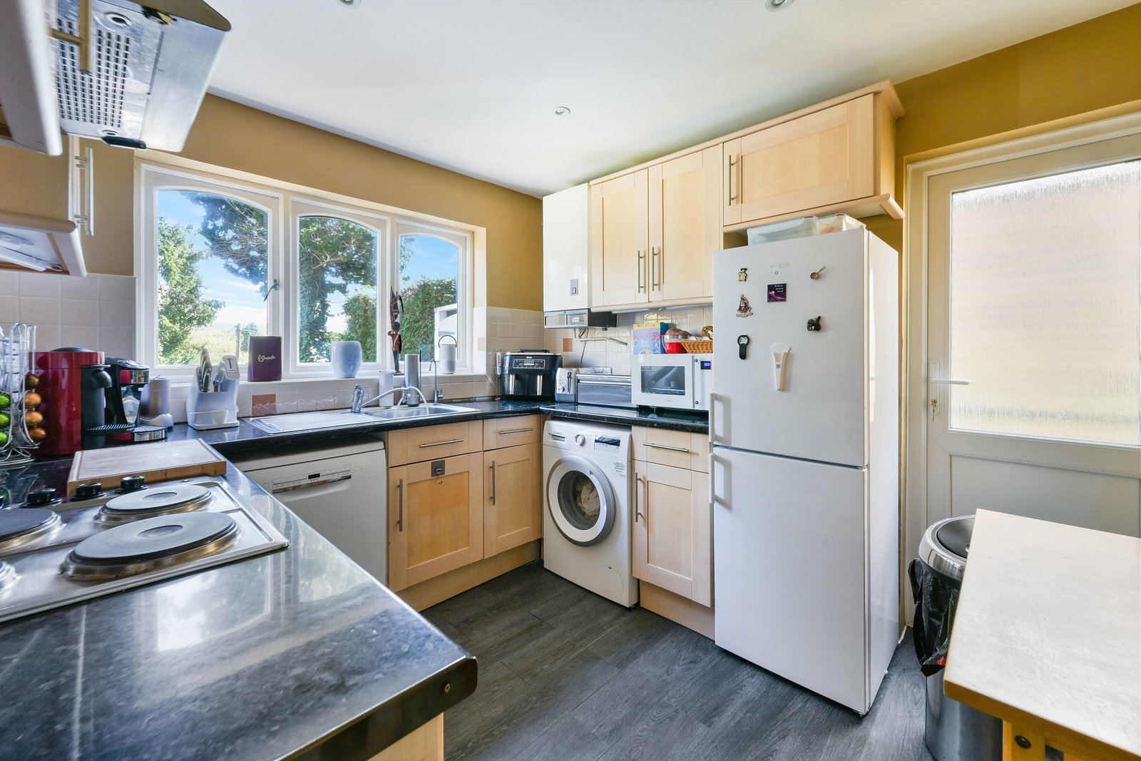 The kitchen is well-appointed with a comprehensive range of units and appliances, including a dishwasher, washing machine and fridge freezer, with convenient side access – deal for busy households.