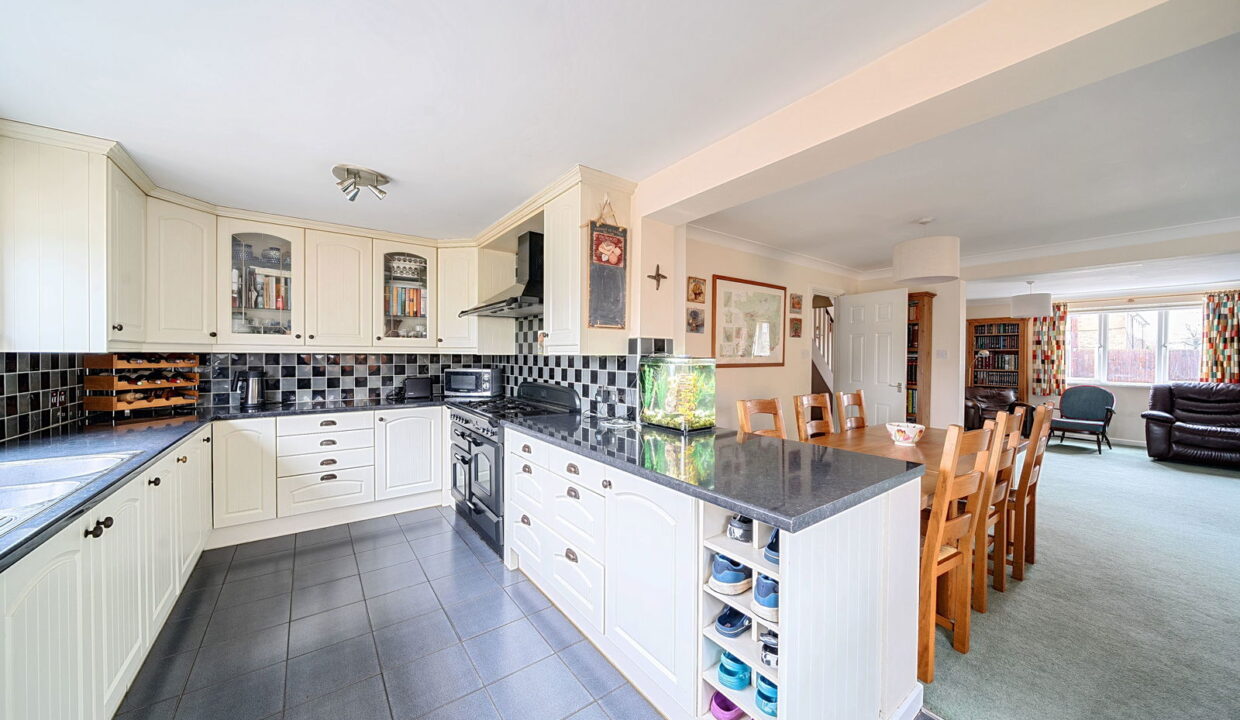 This 4-bedroom end of terrace home has been thoughtfully extended by the previous owners to enhance both the living and bedroom spaces. The ground floor has been designed with modern family life in mind, featuring a large open-plan lounge/dining area, with wood burner and slate hearth, that flows effortlessly into a bright and well-equipped kitchen with range cooker, a range of wall and base units, integrated appliances, and contrasting worktops.