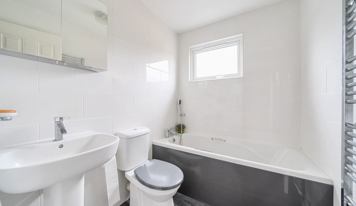 Upstairs, there are three well-proportioned bedrooms, each with ample space and large windows that allow plenty of natural light. The fourth bedroom, while narrower, offers versatility as a home office, nursery, or guest bedroom. Completing the first floor is a modern family bathroom with a paneled bath, wash basin, and WC.