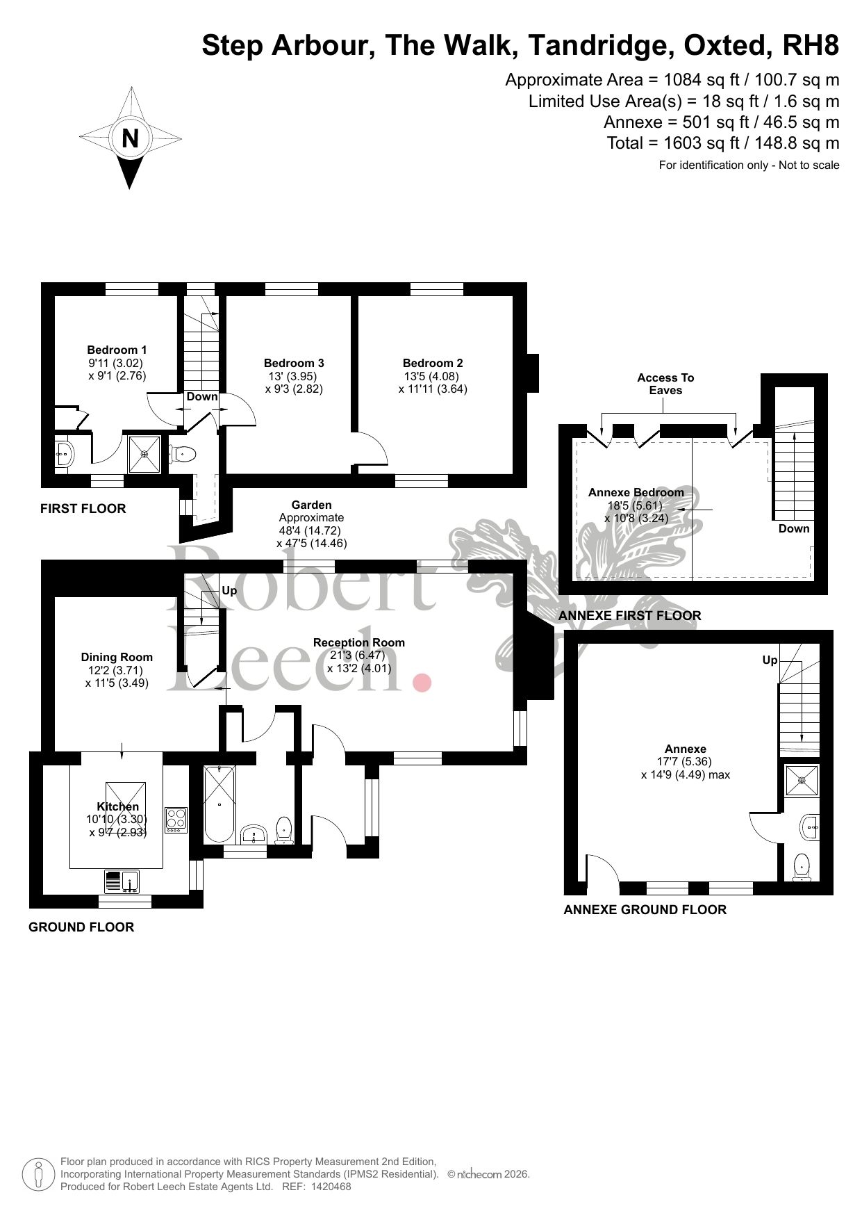 Step Arbour is situated in the picturesque village of Tandridge, offering a quintessential rural setting while remaining close to local amenities, including the village pub and primary school. The nearby town of Oxted provides a wide range of shops, recreational facilities, and educational options, along with a mainline station offering direct services to London Bridge and Victoria in approximately 38 minutes. The M25 (Junction 6) is easily accessible, connecting to Gatwick, Heathrow, and Stansted airports, the Channel Tunnel, and Ebbsfleet International station. Surrounded by open countryside, the property provides a peaceful retreat while maintaining excellent connections to the wider area.