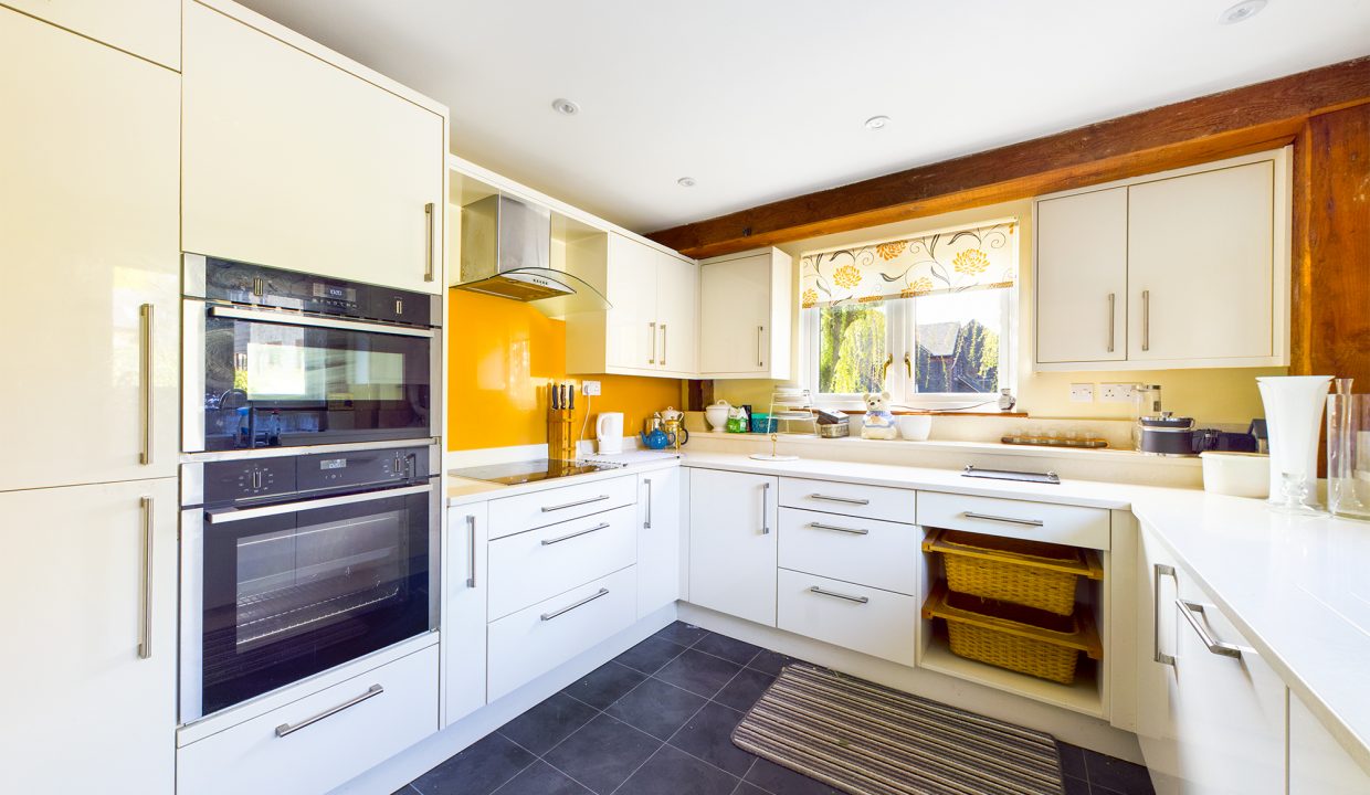 Entering the property at the ground floor, the large hallway leads to a contemporary kitchen featuring quartz worktops, integrated Neff appliances, and plenty of space for a large dining table. The utility room is accessed from the kitchen and features a butler sink. The wide hallway leads up one step to the ground floor master bedroom which has a jack and jill shower room with double sink. A useful study is lit by overhead roof light. The sitting room is two steps down from the hallway and is a beautifully bright room with a working log burner set into an exposed brick chimney. This room has access to a breakfast courtyard that is perfectly positioned to benefit from the morning sun.
