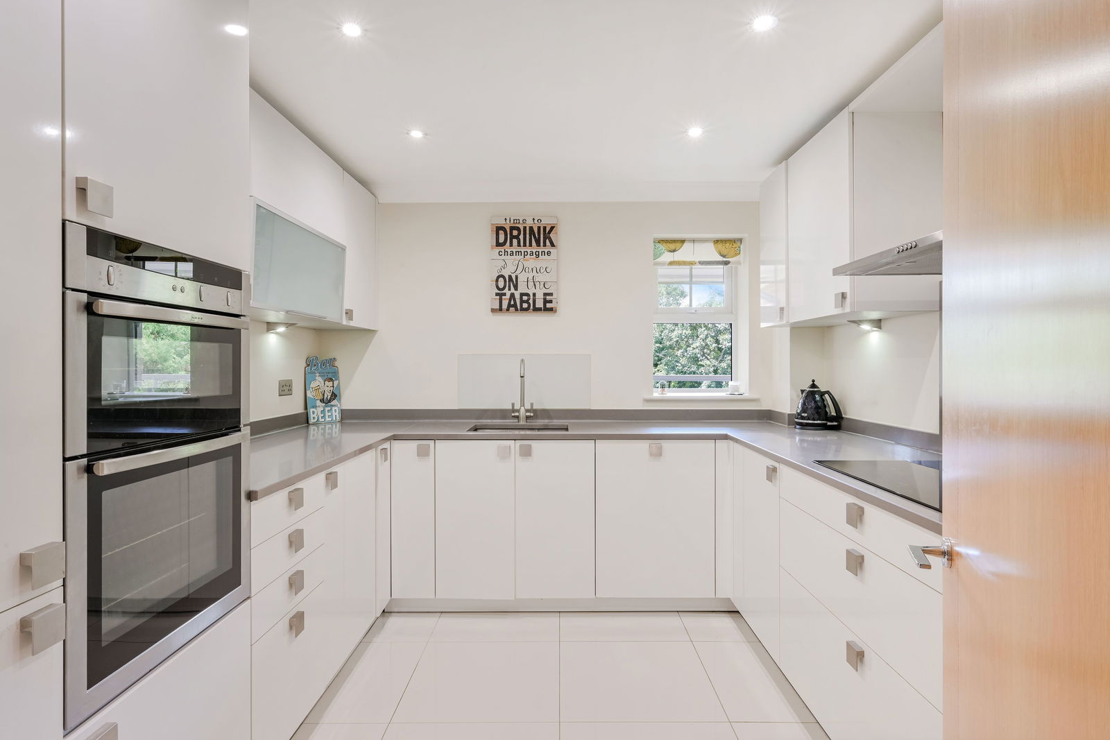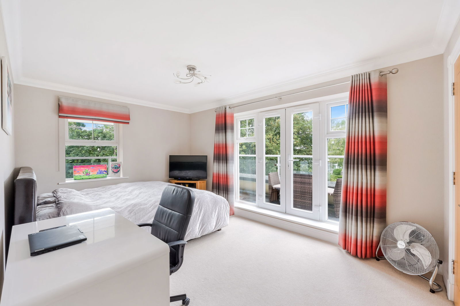There are two double bedrooms, each benefiting from their own dressing rooms and contemporary high-specification ensuite bathrooms. The principal bedroom opens directly onto the balcony, where you can enjoy leafy treetop views extending towards the North Downs.