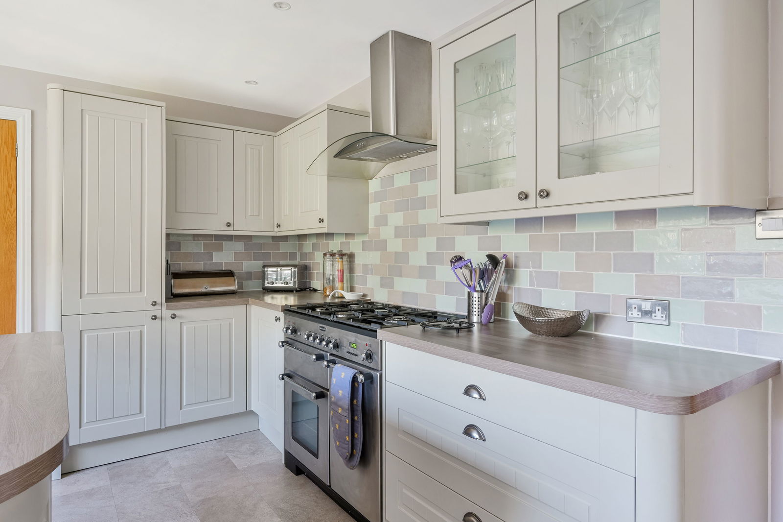 - Contemporary shaker-style kitchen with breakfast area and garden views